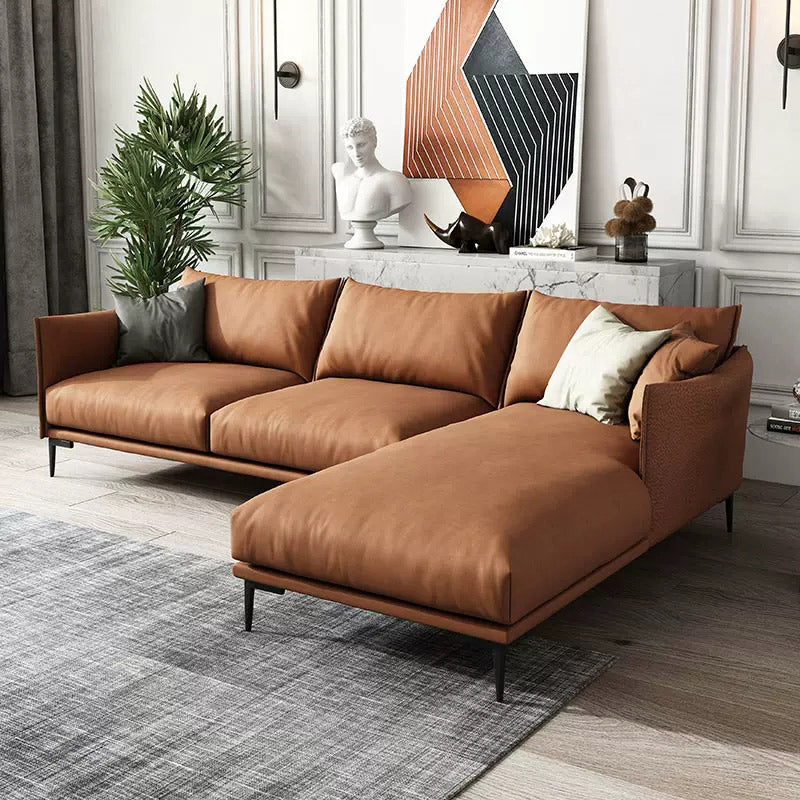 Description Modular Sectional SofaModular structure, each sofa type can be divided into "armrest/backrest" and "seat frame", the armrest/backrest can be freely interchanged and adjusted, and the seat frame has large storage space. Please strictly control the seat frame and carry out the actual operation according to the assembly instructions. Size :L140.9″/W66.9″/H30.7″ Weight: 50kg/110 lb Materials: Wood/Leather/Sponge