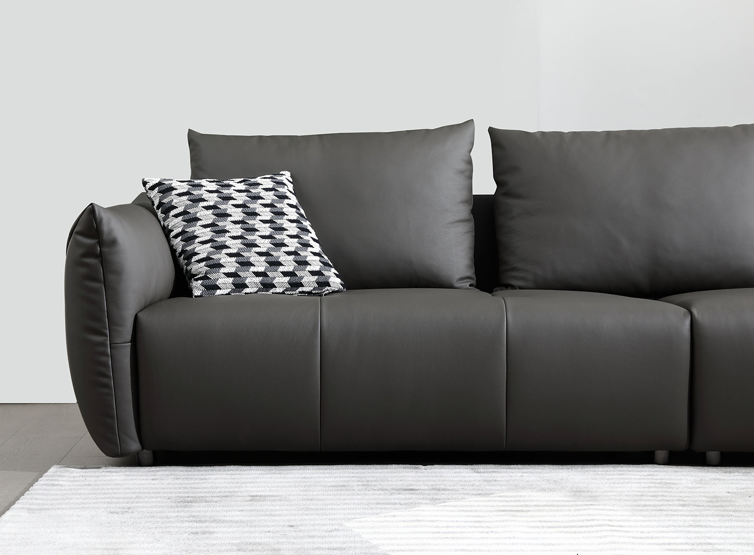 This standard 3-seat sofa is large and warm, with exquisite modular design and soft and generous volume. The backrest supports large pillows that are much higher than the armrests, creating a harmonious and impactful ensemble. Suitable for very large environments, whether it is living, contract, company or other, this sofa attracts attention in a discreet way, the base frame is combined with larch + solid slats, four sides are sealed, strong and firm, the seat bag is made of high Density sponge filling, good resilience, moderate softness and hardness for sitting, backrest doll cotton + down filling, comfortable and soft, this sofa will become the protagonist of any environment.
