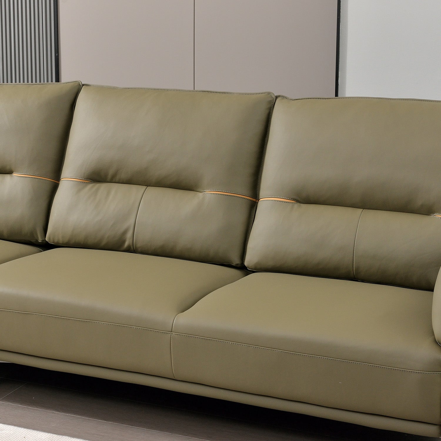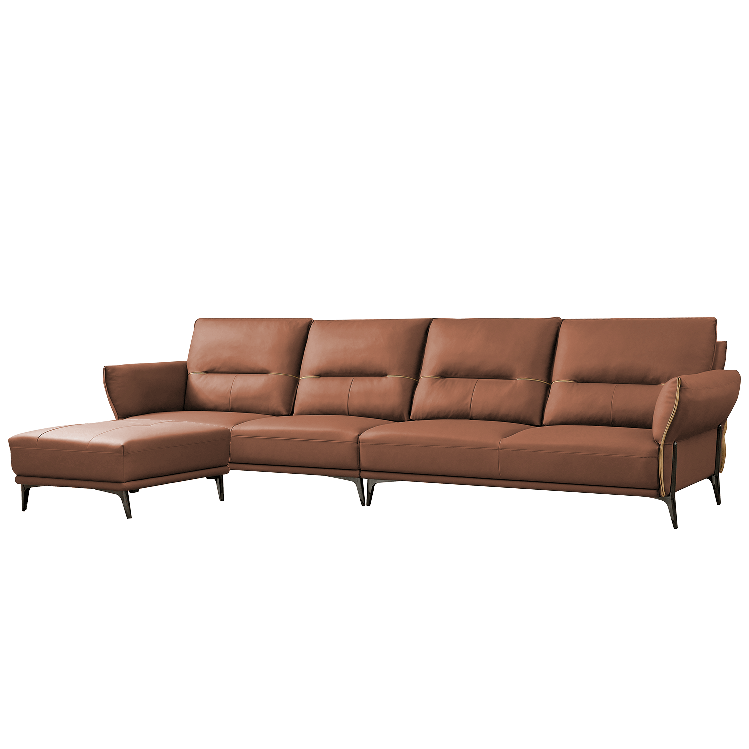 Description: This 4-seat standard leather sofa is large and warm, with modular seat design and soft and generous volume. The backrest supports large pillows that are much higher than the armrests, creating a harmonious and impactful ensemble. Suitable for very large environments, whether it is living, contract, company or other, this sofa attracts attention in a discreet way, the base frame is combined with larch + solid slats, four sides are sealed, strong and firm, the seat bag is made of high Density sponge filling, good resilience, moderate softness and hardness for sitting, backrest doll cotton + down filling, comfortable and soft, this sofa will become the protagonist of any environment. Size: Left (L65″/W39″/H36″) Right (L65″/W39″/H36″) Pedal (L31″/W31″/H17″) Total Length: 3.32 meters Weight: 60kg/132 pound Materials: Wood/Leather/Sponge Contain: pedals